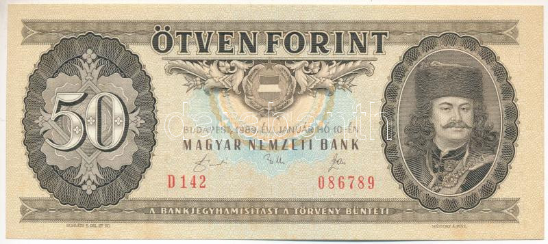 1989. 50Ft "D 142 086789" T:AU Adamo F23 https://www.darabanth.com/de/464-Fernauktion/464.0/Numismatik/Ungarische-Banknoten~500008/1989-50Ft-D-142-086789-T-AU-Adamo-F23~II3127152