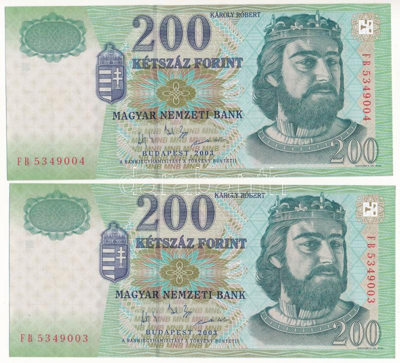 Beschreibung: 2003. 200Ft "FB" (2x) sorszámkövetők T:AU