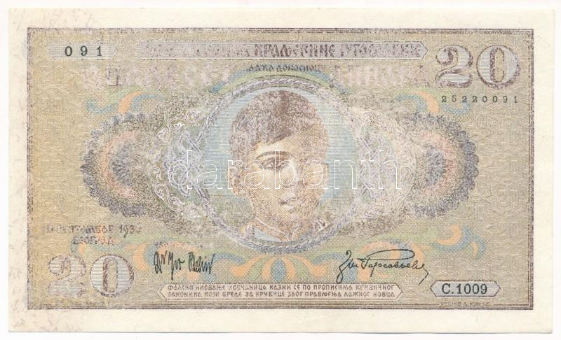 Yugoslavia 1... https://www.darabanth.com/de/464-Fernauktion/464.0/Numismatik/Weltweit-Banknoten~500015/Jugoszlavia-1936-20D-nyomdahibas-halovany-nyomat-T-XF-Yugoslavia-1936-20-Dinara-with-faint~II3125649