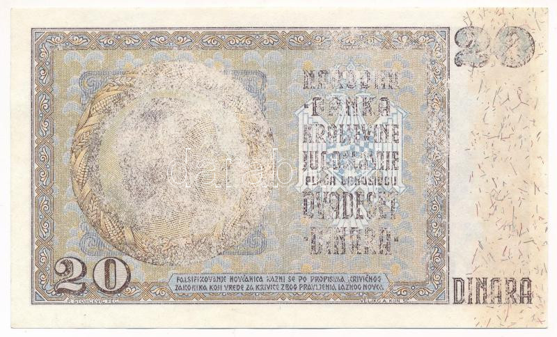 Yugoslavia 1936. 20 Dinara with faint print printing error C:XF