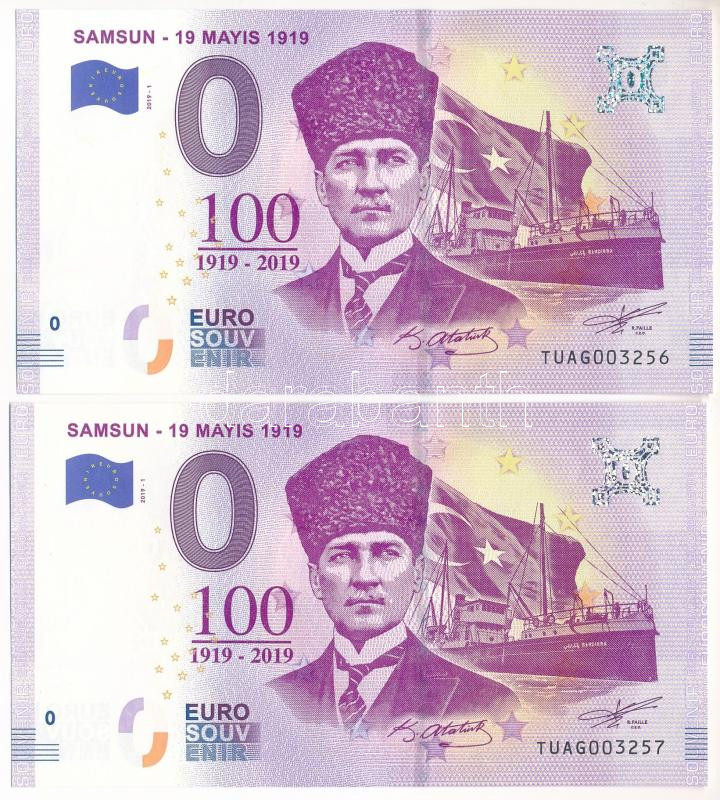 Beschreibung: Törökország 2019. 0E "Samsun" szuvenír bankjegy (2x) sorszámkövetők "TUAG003256 - TUAG003257" T:UNC Turkey 2019. 0 Euro "Samsun" souvenir banknote (2x) consecutive serials "TUAG003256 - TUAG003257" C:UNC