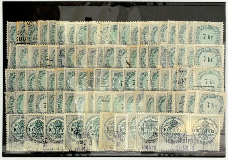 Beschreibung: 1891 100 db okmánybélyeg, benne 80 db 7kr és 10 db 10kr pár, stecklapon