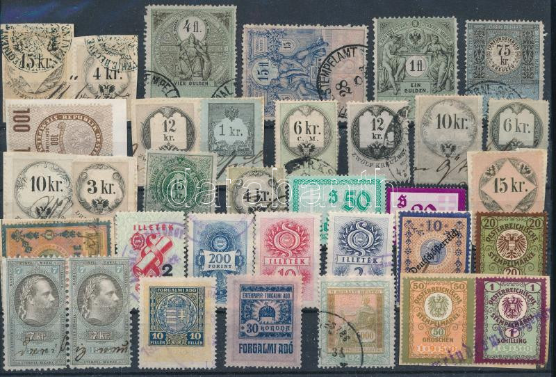 Beschreibung: 34 db főleg régi magyar és osztrák okmánybélyeg