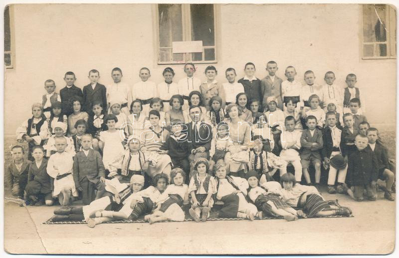 Beschreibung: 1938 Gyergyótölgyes, Tölgyes, Tulghes, Tulghies; iskolások csoportja, erdélyi folklór / school, Transylvanian folklore. photo (b)