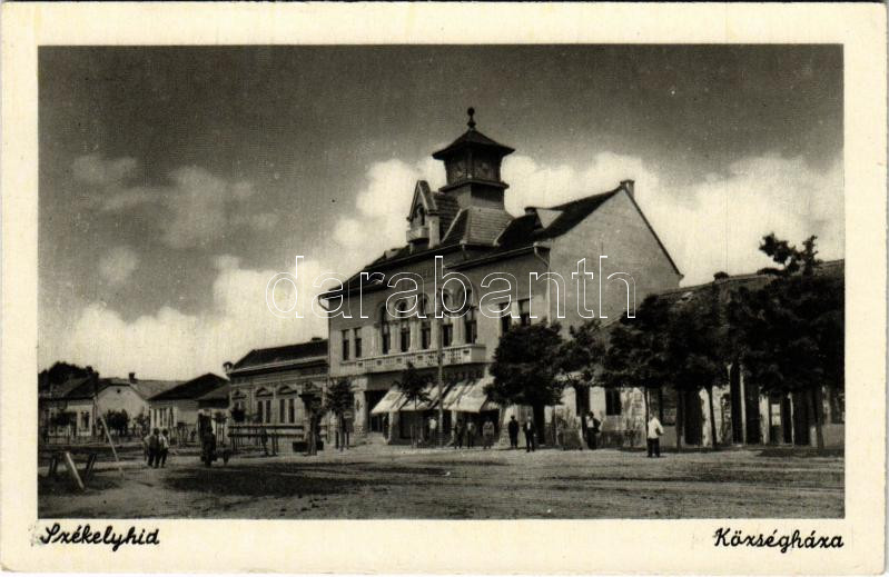 Székelyhíd, Sacueni; Községháza, üzletek / town hall, shops https://www.darabanth.com/de/465-Fernauktion/465.0/Ansichtskarten/Siebenburgen~1500006/Szekelyhid-Sacueni-Kozseghaza-uzletek-town-hall-shops~II3131433