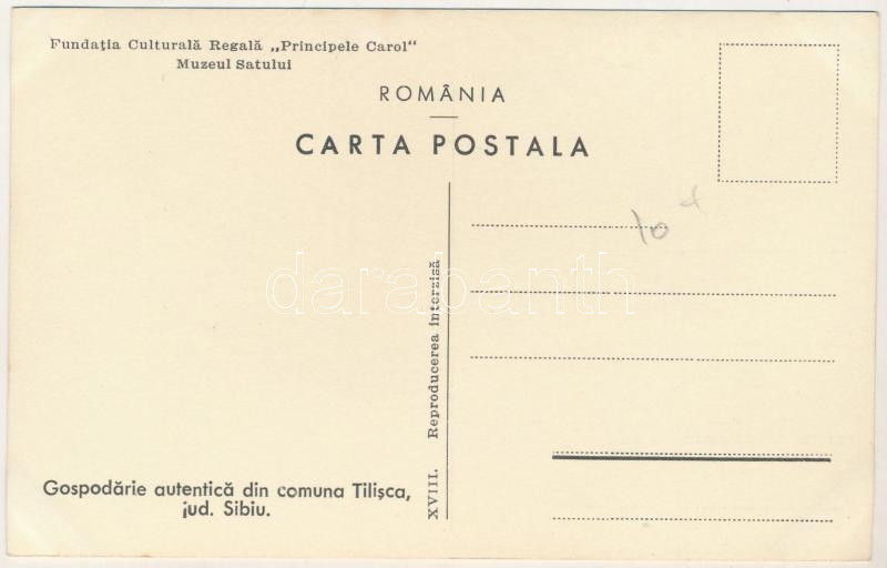 Tilicske, Tiliska, Tilisca (Szelistye, Saliste); Gospodarie autentica.... https://www.darabanth.com/de/465-Fernauktion/465.0/Ansichtskarten/Siebenburgen~1500006/Tilicske-Tiliska-Tilisca-Szelistye-Saliste-Gospodarie-autentica-Fundatia-Culturala-Regala~II3116008