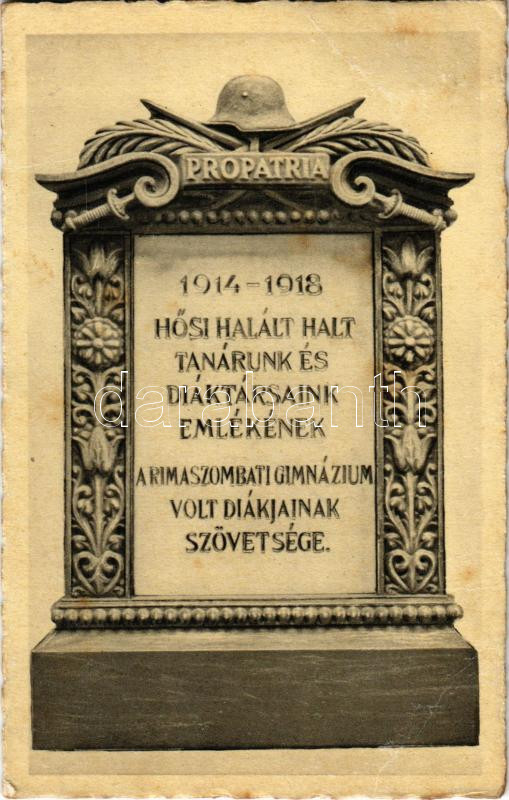Rimaszombat, Rimavska Sobota; Pro Patria 1914-1918 Hősi halált halt tanárunk és diáktársaink emlékének a rimaszombati gimnázium volt diákjainak szövetsége / military heroes monument (EK)