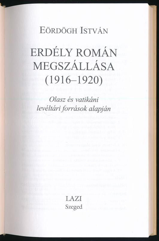 Eördögh István: Erdély román megszállása (1916-1920). Olasz és vatikán... https://www.darabanth.com/de/465-Fernauktion/465.0/Bucher/Bucher-Geschichte~1000019/Eordogh-Istvan-Erdely-roman-megszallasa-1916-1920-Olasz-es-vatikani-leveltari-forrasok~II3135364