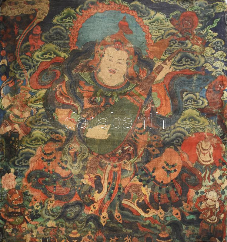 Thangka, Dhatarattha ábrázolással. Tibet vagy Kína, XX. sz. első fele,... https://www.darabanth.com/de/465-Fernauktion/465.0/Kunst-Dokumente-andere-Sammelgebiete/Antik~500003/Thangka-Dhatarattha-abrazolassal-Tibet-vagy-Kina-XX-sz-elso-fele-nyomat-vaszon-90x82-cm-~II3099217
