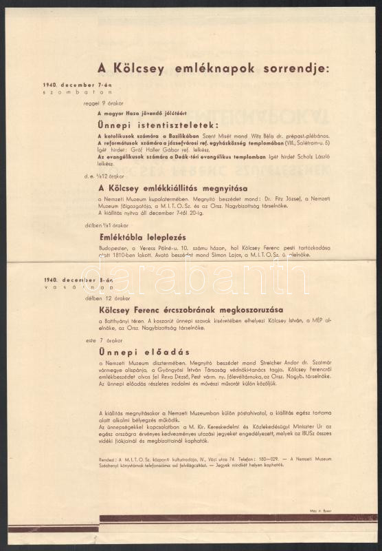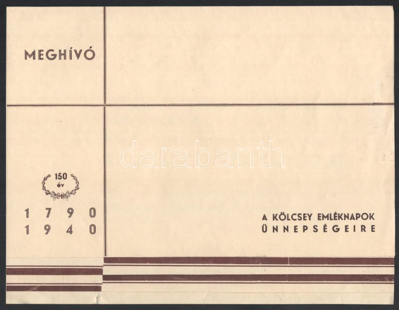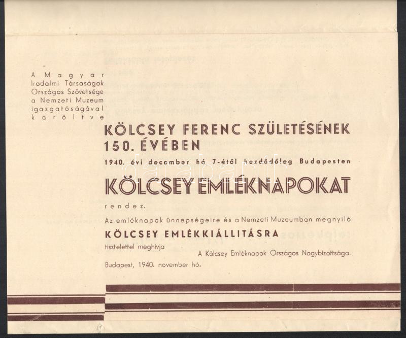 1940 Meghívó a Kölcsey napok emlékünnepségre. 8 p. https://www.darabanth.com/de/465-Fernauktion/465.0/Kunst-Dokumente-andere-Sammelgebiete/Drucksachen~1000012/1940-Meghivo-a-Kolcsey-napok-emlekunnepsegre-8-p~II3134768