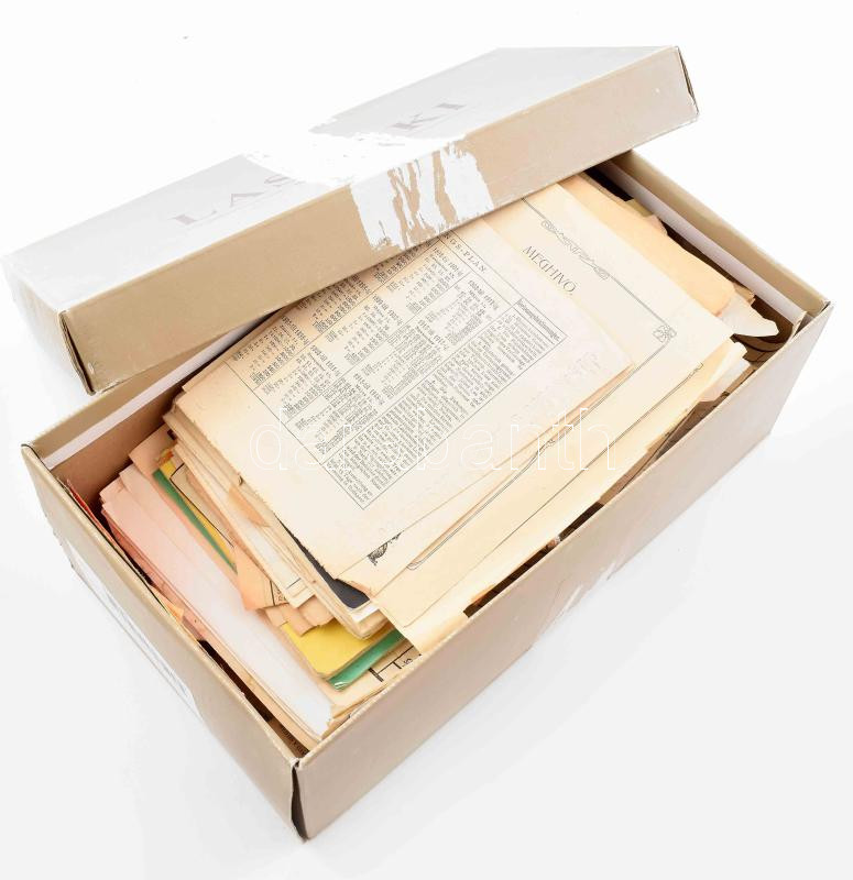 Egy cipősdoboznyi vegyes papírrégiség: reklámnyomtatványok, részvények... https://www.darabanth.com/de/465-Fernauktion/465.0/Kunst-Dokumente-andere-Sammelgebiete/Drucksachen~1000012/Egy-ciposdoboznyi-vegyes-papirregiseg-reklamnyomtatvanyok-reszvenyek-MAV-iratok-jegyek-stb~II3135005