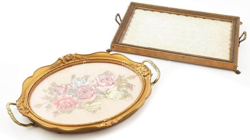 Beschreibung: 2 darab antik tálca, h: 31-35 cm