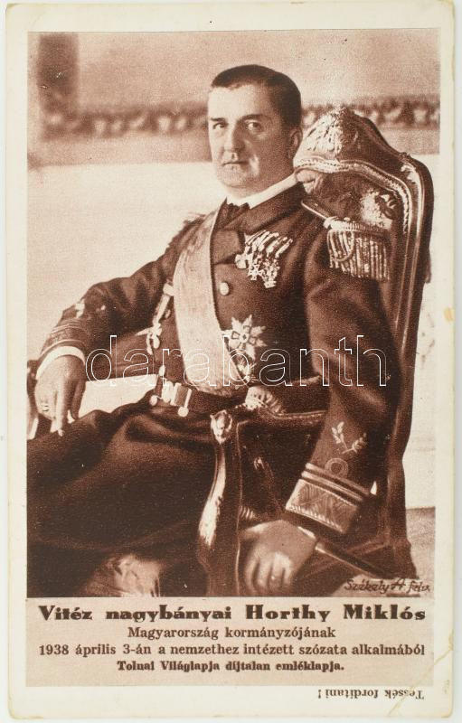 1938 Horthy Miklós, Nemzethez intézett szózata alkalmából; Tolnai Vilá... https://www.darabanth.com/de/465-Fernauktion/465.0/Kunst-Dokumente-andere-Sammelgebiete/Militaria~1000008/1938-Horthy-Miklos-Nemzethez-intezett-szozata-alkalmabol-Tolnai-Vilaglapja-emleklapja-~II3135503
