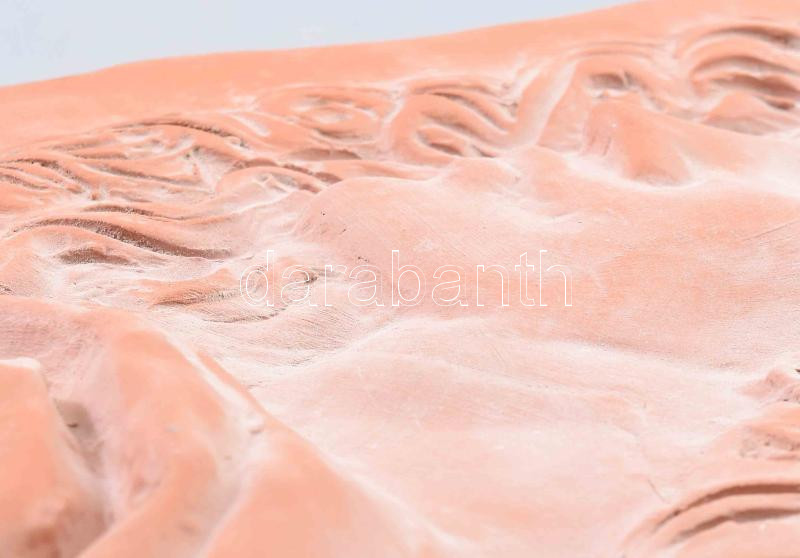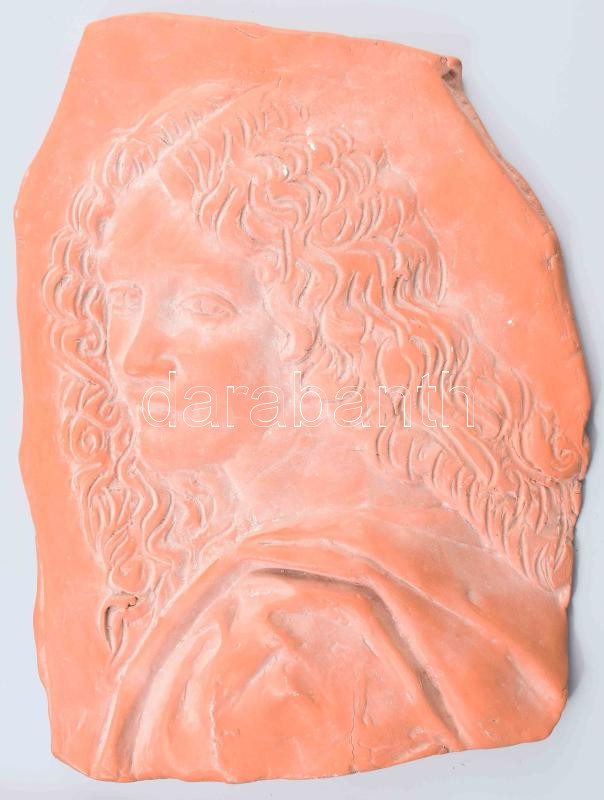 Hölgyportré, égetett agyag dombormű / falikép, jelzett a hátoldalon, alján repedéssel, 36x27 cm