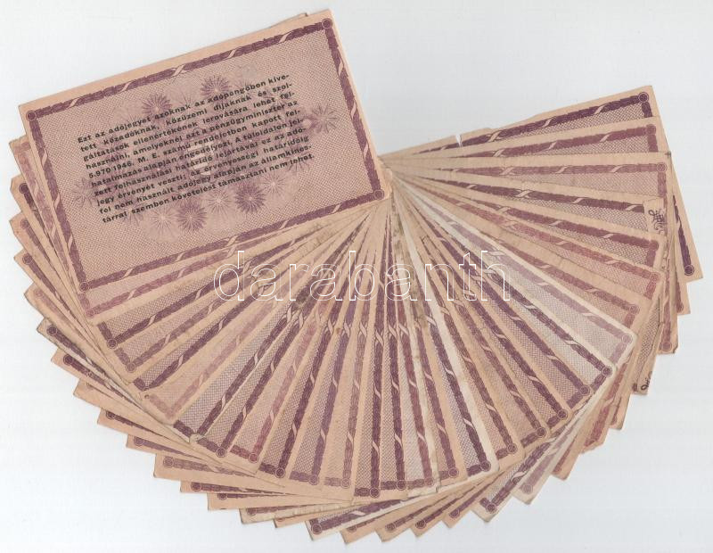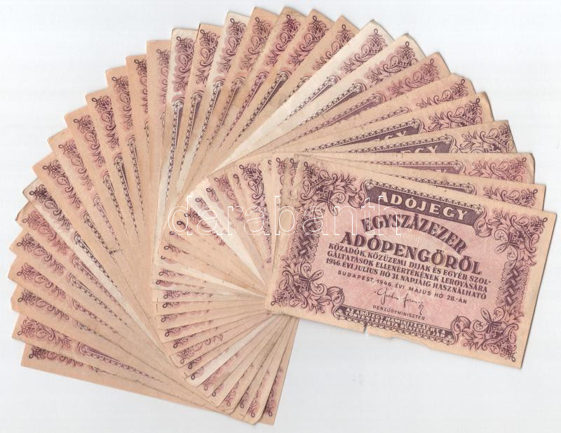 Beschreibung: 1946. 100.000AP (30x) közte változatok: sorszámozott és sorszám nélküliek, vastag fehér papír illetve vízjeles verziók is T:F,VG