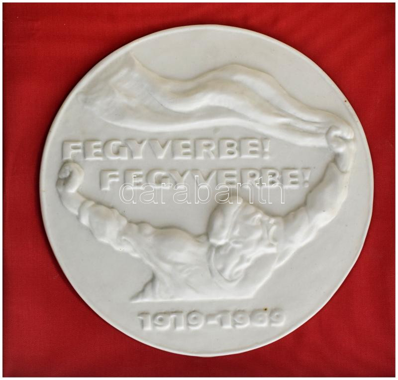 1969. "Fegyverbe! Fegyverbe 1919-1969" egyoldalas porcelán plakett a T... https://www.darabanth.com/de/465-Fernauktion/465.0/Numismatik/Ungarische-Gedenkmunzen-Plaketten~2500012/1969-Fegyverbe-Fegyverbe-1919-1969-egyoldalas-porcelan-plakett-a-Tanacskoztarsasag-50~II3133615