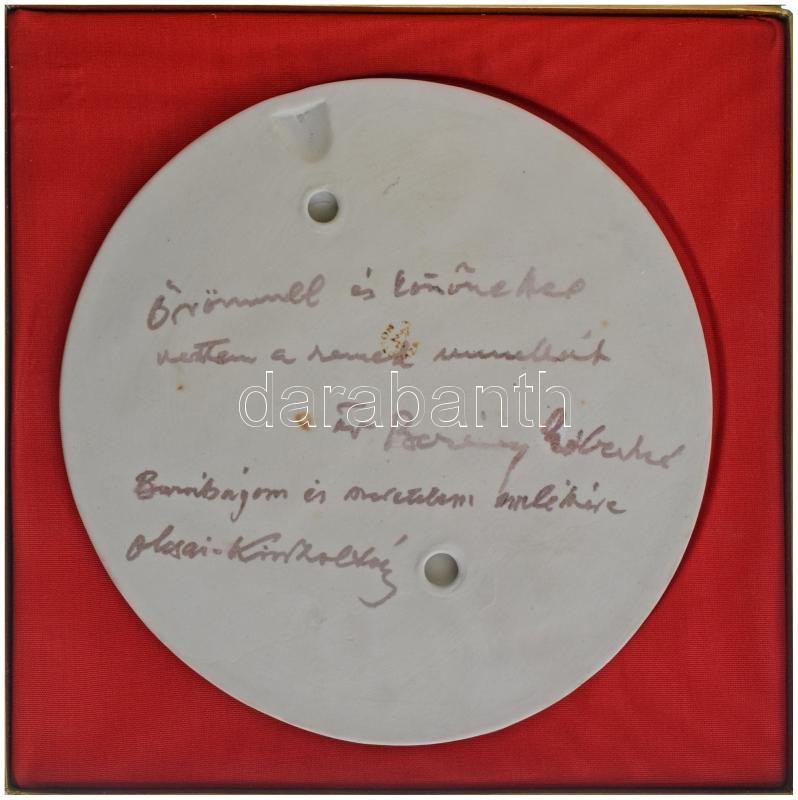 Beschreibung: 1969. "Fegyverbe! Fegyverbe 1919-1969" egyoldalas porcelán plakett a Tanácsköztársaság 50. évfordulójára, hátoldalon kézzel írt ajánló sorok, eredeti dísztokban (171mm) T:AU