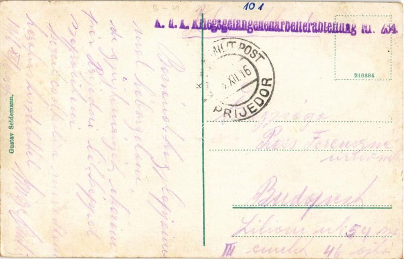 Beschreibung: 1916 Prijedor, church + "K.U.K. MILIT. POST PRIJEDOR" + "K.u.k. Kriegsgefangenenarbeiterabteilung No. 234."