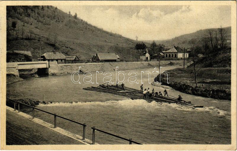 Beschreibung: 1940 Kőrösmező-Svidovec, Jasina-Svidovec, Körösmező, Jaszinya, Jasina, Yasinia ; Voroplavba na C. Tise / faúsztató tutajosok a Tiszán / rafting, timber transport (EB)