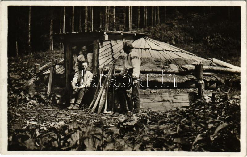 Beschreibung: Kőrösmező, Körösmező, Yasinia, Yasinya, Jaszinya, Jassinja, Jasina (Máramaros); Koliba huculskych drevorubcu / Hucul favágók kunyhója / Transcarpathian folklore, lumberjack's hut
