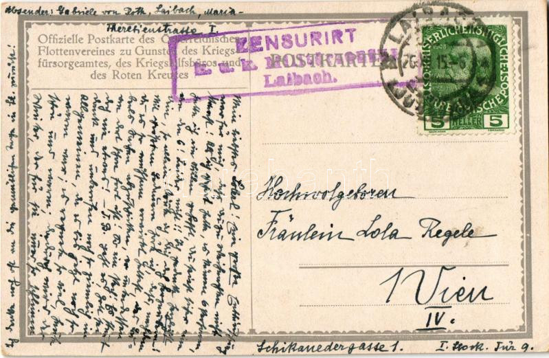 1915 SMS SZENT ISTVÁN osztrák-magyar haditengerészet Tegetthoff-osztályú csatahajó vízre bocsájtása / K.u.k. Kriegsmarine, Bau eines Grosskampfschiffes, Stapellauf. Offizielle Postkarte des Österreichischen Flottenvereines zu Gunsten des Kriegsfürsorgeamtes des Kriegshilfsbüros und des Roten Kreuzes / WWI Austro-Hungarian Navy dreadnought battleship s: Harry Heusser (EK)