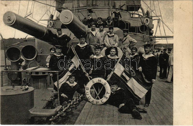 SMS BUDAPEST Osztrák-Magyar Haditengerészet Monarch-osztályú partvédő ... https://www.darabanth.com/de/466-Fernauktion/466.0/Ansichtskarten/Kriegsschiffe~2000030/SMS-BUDAPEST-Osztrak-Magyar-Haditengereszet-Monarch-osztalyu-partvedo-csatahajo-matrozai-za~II3140267