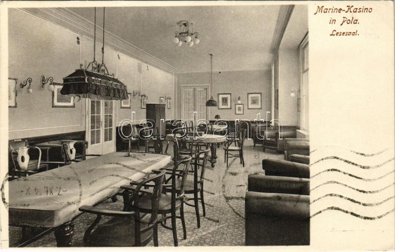1914 Pola, Pula; K.u.K. Kriegsmarine Marine-Kasino. Lesesaal/ Osztrák-... https://www.darabanth.com/de/466-Fernauktion/466.0/Ansichtskarten/Kroatien~2000014/1914-Pola-Pula-KuK-Kriegsmarine-Marine-Kasino-Lesesaal-Osztrak-magyar-haditengereszeti~II3140617