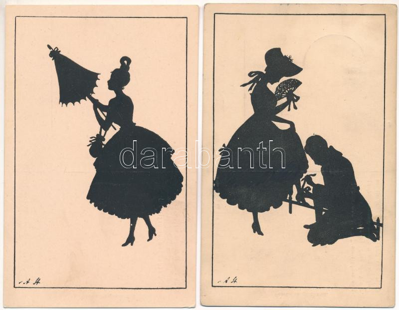 Beschreibung: 2 db RÉGI sziluett művészlap / 2 pre-1945 silhouette art postcards, G.K.V.B. Nr. 483/1 and Nr. 488/5.