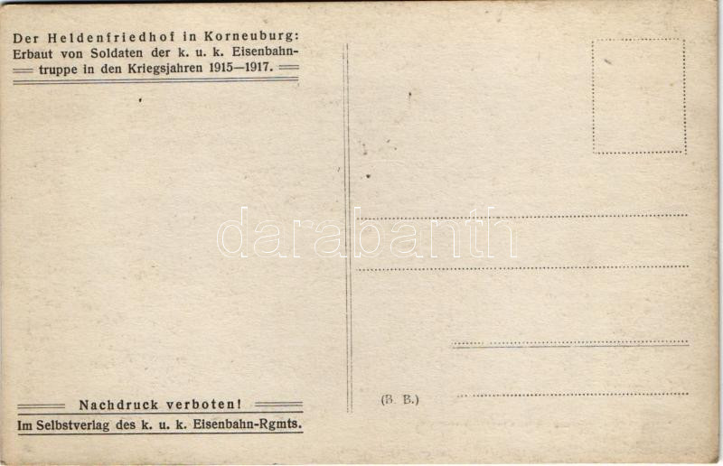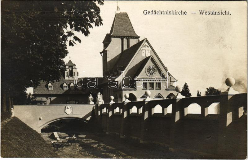 Gedächtniskirche Westansicht - Der Heldenfriedhof in Korneuburg: Erbaut von Soldaten der k.u.k. Eisenbahntruppe in den Kriegsjahren 1915-1917. Im Selbstverlag des k.u.k. Eisenbahn-Rgtms / Első világháborús osztrák-magyar emléktemplom a hősök temetőjében, a vasúti ezred építette / WWI Austro-Hungarian military heroes cemetery and church