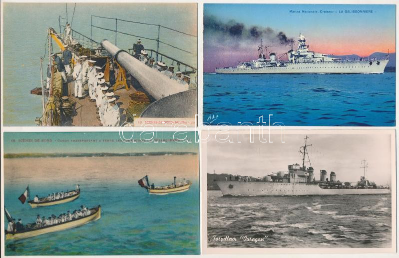 65 db RÉGI használatlan francia motívum képeslap: hajók, főleg első világháborús hadihajók. Vegyes minőség / 65 pre-1950 unused French motive postcards: ships, mostly WWI warships. Mixed quality