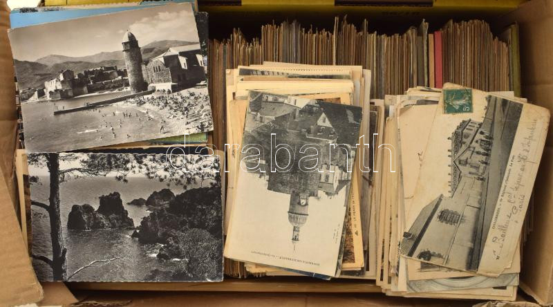 Beschreibung: Kb. 2400 db főleg RÉGI francia képeslap dobozban, vegyes minőség / Cca. 2400 mostly pre-1950 French postcards in a box, mixed quality