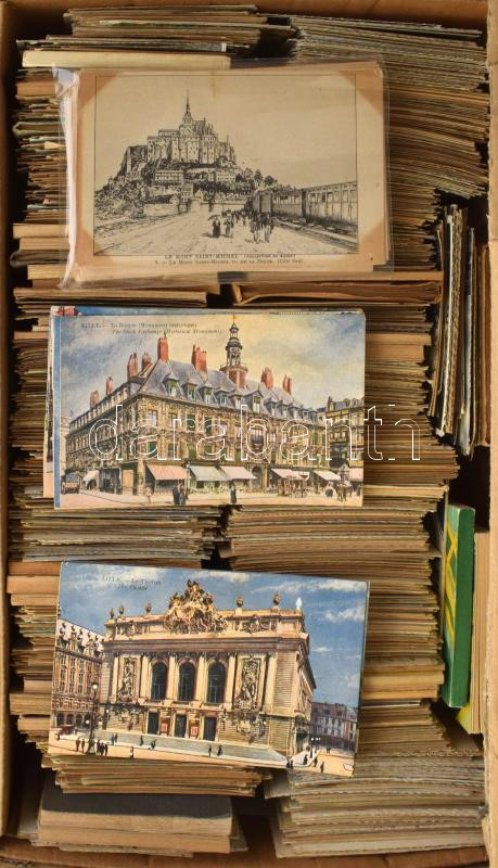 Beschreibung: Kb. 2400 db főleg RÉGI francia képeslap dobozban, vegyes minőség / Cca. 2400 mostly pre-1950 French postcards in a box, mixed quality