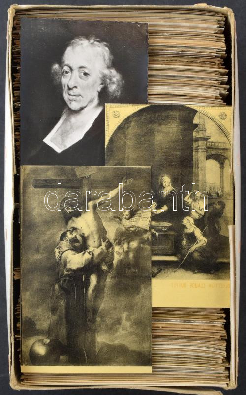 Kb. 650 db főleg RÉGI francia képeslap dobozban: múzeumi képeslapok, sok használatlan, művészetek / Cca. 650 mostly pre-1950 French postcards in a box: museum art, many unused