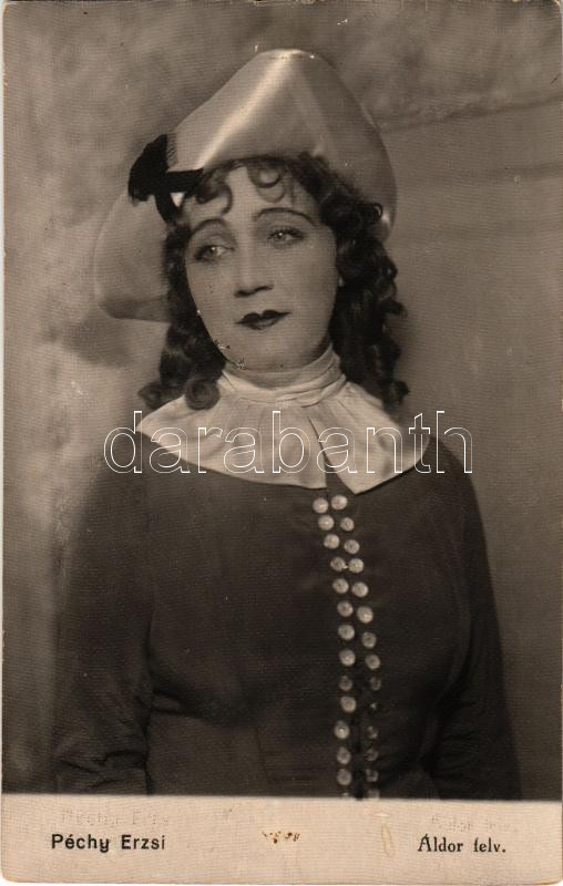 Péchy Erzsi. Áldor Dezső felvétele és kiadása, photo https://www.darabanth.com/de/466-Fernauktion/466.0/Ansichtskarten/Schauspieler-Schauspielerin~2000078/Pechy-Erzsi-Aldor-Dezso-felvetele-es-kiadasa-photo~II3144687