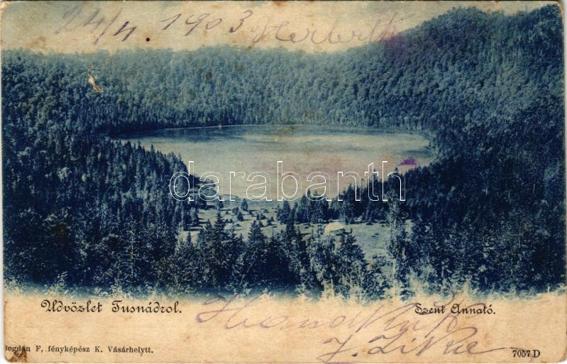 1903 Tusnád, Szent Anna tó. Bogdán F. fényképész / Lacul Sfanta Ana / ... https://www.darabanth.com/de/466-Fernauktion/466.0/Ansichtskarten/Siebenburgen~2000006/1903-Tusnad-Szent-Anna-to-Bogdan-F-fenykepesz-Lacul-Sfanta-Ana-lake-b~II3147345