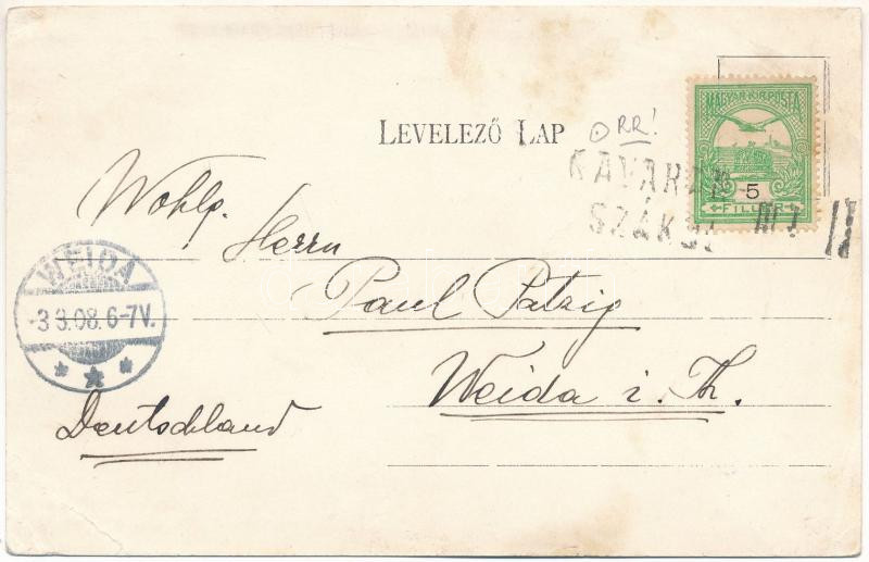 Beschreibung: Nagymutnok, Nagy Mutnyik, Matnicu Mare (Banat); kastély + "KAVARÁN-SZÁKUL" ritka vasúti mozgóposta bélyegzés / castle (EB)