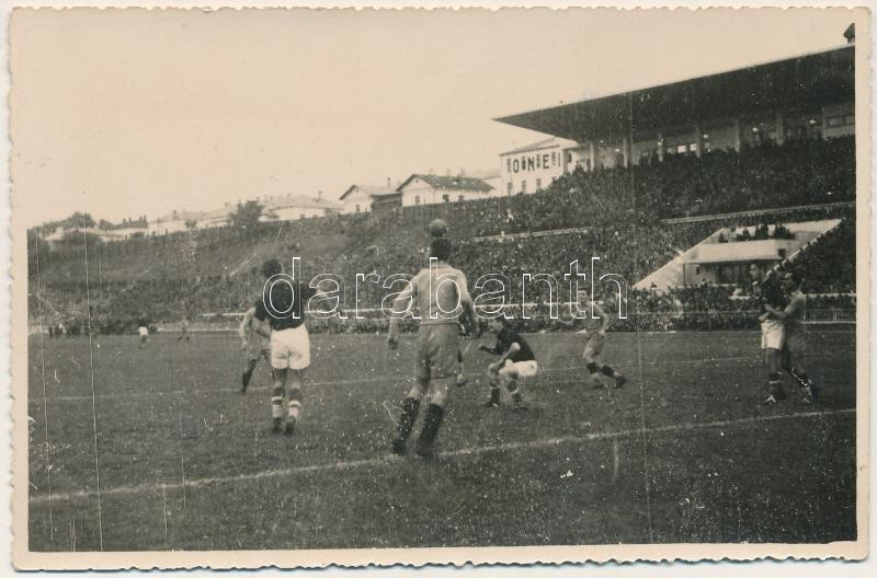 1936 Bucharest, Bukarest, Bucuresti, Bucuresci; Románia - Magyarország 1:2 labdarúgó mérkőzés, focisták / Romania - Hungary football match, players, sport. E. Gombos photo (ragasztónyom / gluemarks)