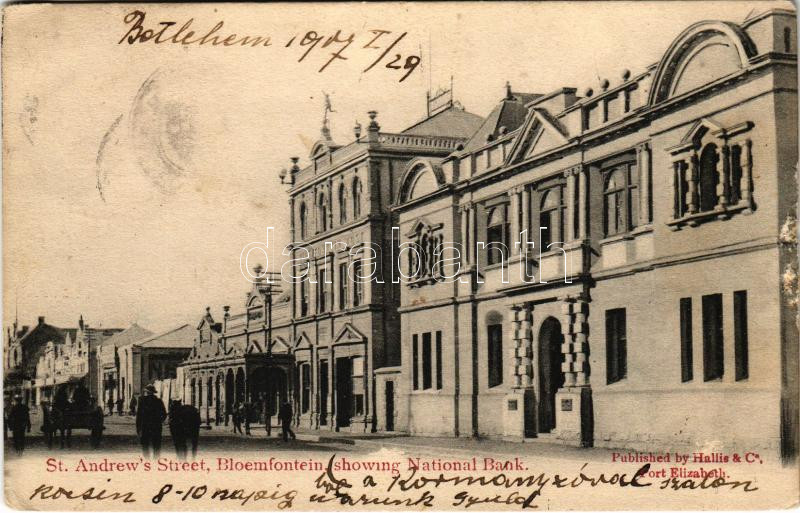 1907 Bloemfontein, St. Andrew's Street, National Bank (tear) https://www.darabanth.com/de/466-Fernauktion/466.0/Ansichtskarten/Sudafrikanische-Republik~2000042/1907-Bloemfontein-St-Andrews-Street-National-Bank-tear~II3146274
