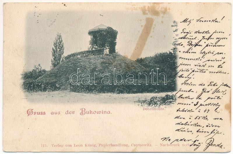 1899 (Vorläufer) Dobrynivtsi, Dobronauti, Dobronoutz; Gruss aus der Bu... https://www.darabanth.com/de/466-Fernauktion/466.0/Ansichtskarten/Ukraine~2000106/1899-Vorlaufer-Dobrynivtsi-Dobronauti-Dobronoutz-Gruss-aus-der-Bukowina-Bukovina-Leon-Koni~II3144955