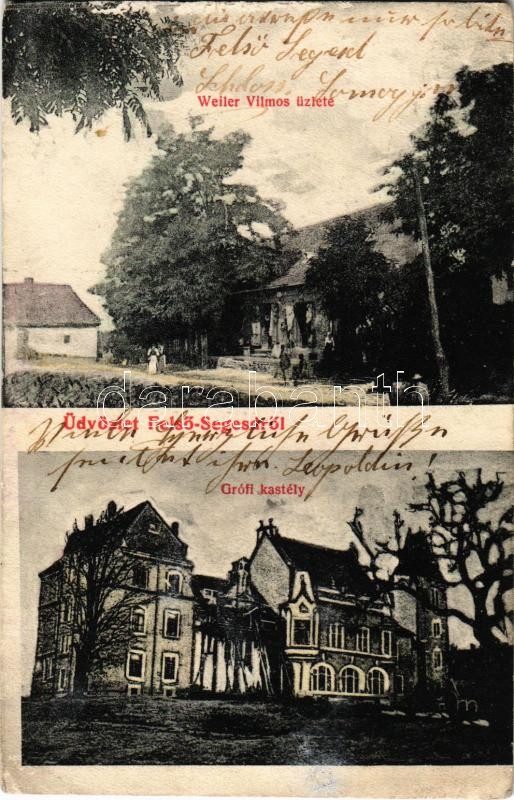 1908 Felsősegesd (Segesd), Weiler Vilmos üzlete, Grófi kastély (felüle... https://www.darabanth.com/de/466-Fernauktion/466.0/Ansichtskarten/Ungarn~2000005/1908-Felsosegesd-Segesd-Weiler-Vilmos-uzlete-Grofi-kastely-feluleti-serules-surface-d~II3146178