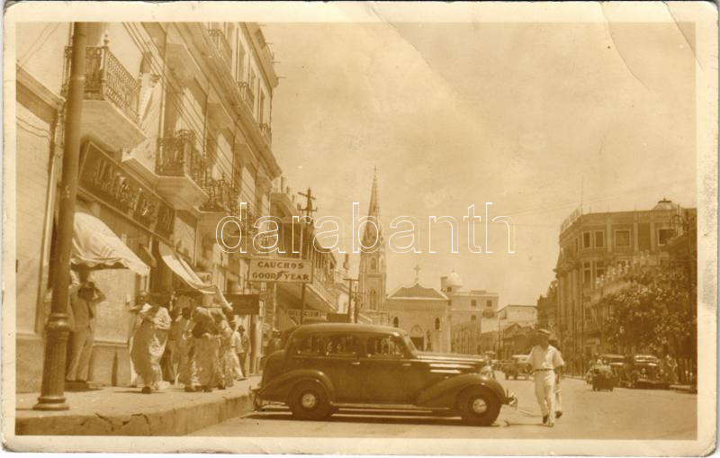 Beschreibung: 1937 Maracaibo, street view, automobile, shops, Cauchos Goodyear. photo (EB)