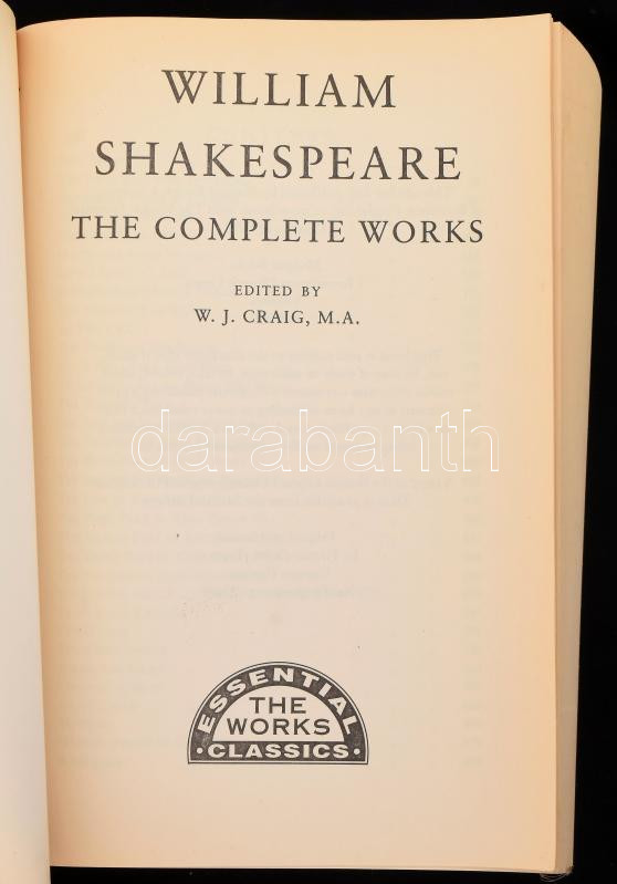 William Shakespeare: The complete works. Edited by W. J. Craig. Essential Classics. London, 1993, Magpie Books. Angol nyelven. Kiadói papírkötés, fakó, kissé deformált gerinccel.