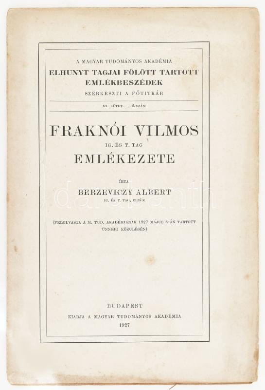 Berzeviczy Albert Fraknói Vilmos ig. és t. tag emlékezete. Bp., 1927. ... https://www.darabanth.com/de/466-Fernauktion/466.0/Bucher/Bucher-Andere-kuriositaten~500042/Berzeviczy-Albert-Fraknoi-Vilmos-ig-es-t-tag-emlekezete-Bp-1927-MTA-45p-Kiadoi-papirborC3~II3082530