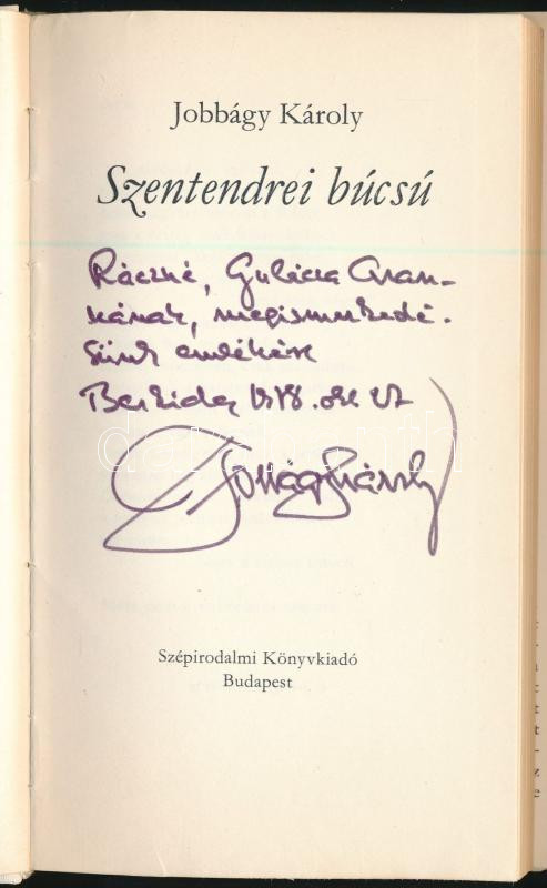 Jobbágy Károly: Szentendrei búcsú. DEDIKÁLT! Bp.,1978,Szépirodalmi. Ki... https://www.darabanth.com/de/466-Fernauktion/466.0/Bucher/Bucher-Andere-kuriositaten~500042/Jobbagy-Karoly-Szentendrei-bucsu-DEDIKALT-Bp-1978-Szepirodalmi-Kiadoi-egeszvaszon-kot~II3144132