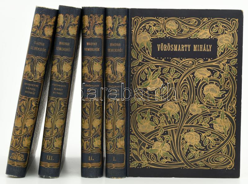 Vörösmarty Mihály munkái I-III. köt. Gyulai Pál bevezetésével.; Berzsenyi Dániel. Sajtó alá rendezte: Bánóczi József. Váczy János bevezetésével. Bp., 1906 - 1903, Lampel R. (Wodianer F. és Társai.) Korabeli szecessziós dúsan aranyozott félvászon-kötés, a borítón kopásnyomokkal.