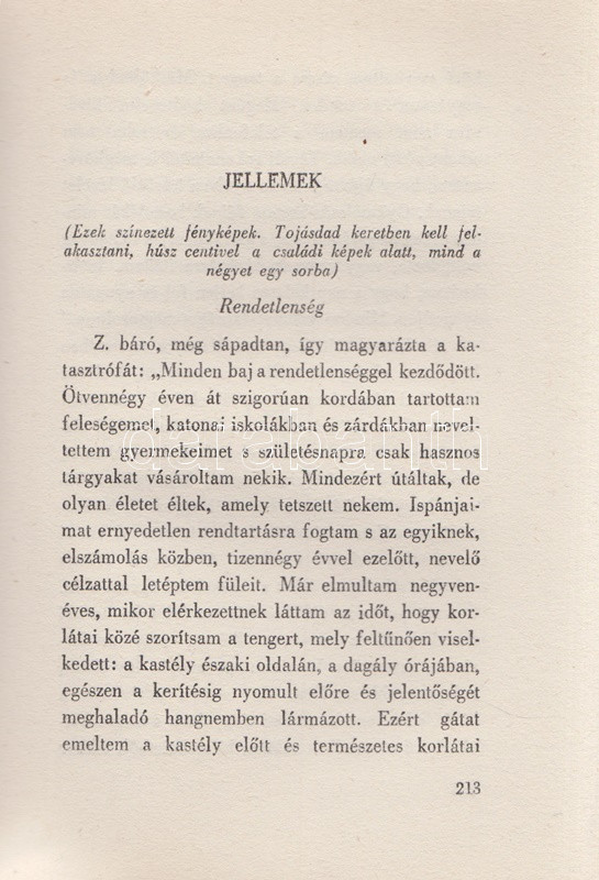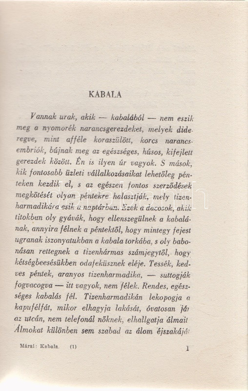 Márai Sándor tárca- és elbeszéléskötete először 1936-ban jelent meg. A címoldalon és az utolsó számozott oldalon régi tulajdonosi bélyegzés.