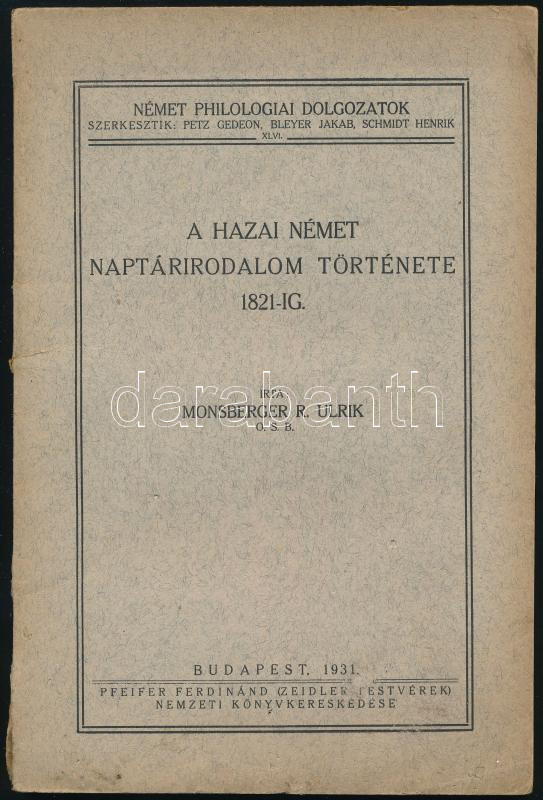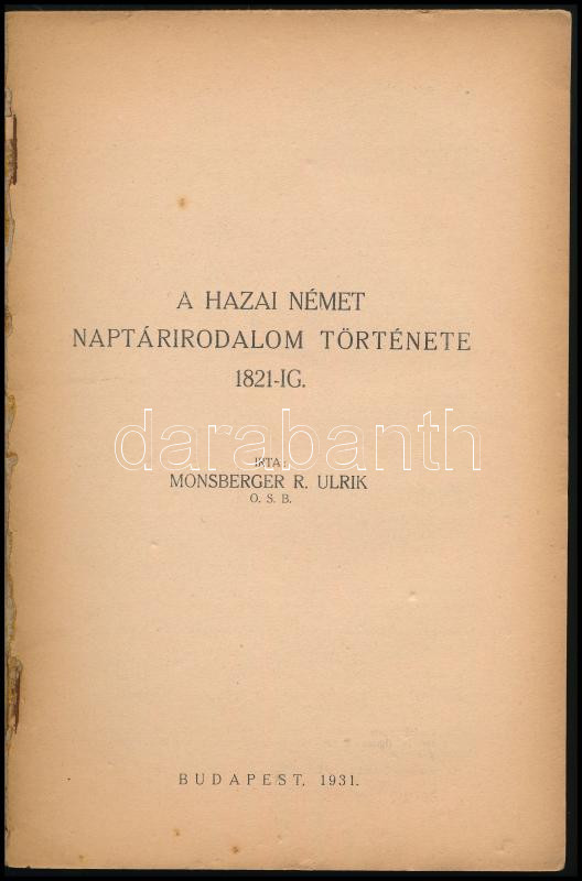 Monsberger R. Ulrik - A hazai német naptárirodalom története 1821-ig.