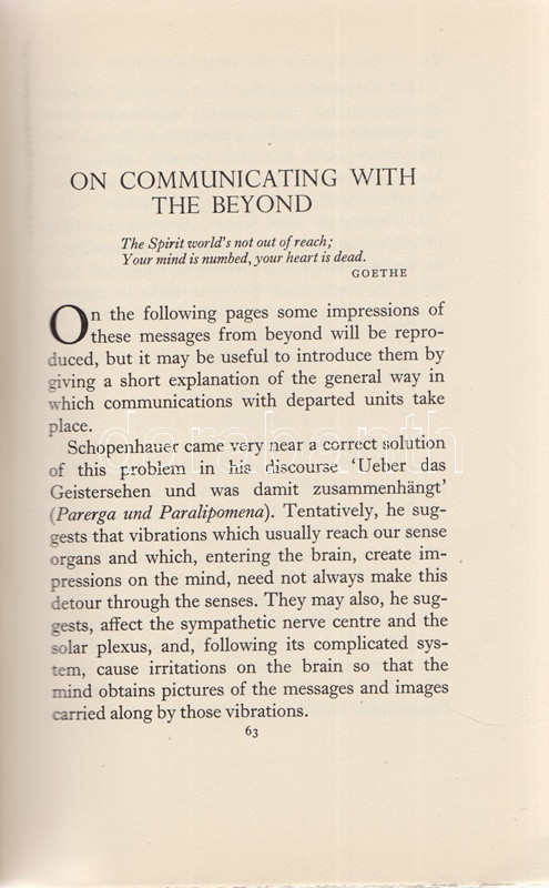 Palmstierna, Erik: Horizons of Immortality. A Quest for Reality. London, 1937. Constable & Co Ltd. (Printed by Robert Maclehose and Co. Ltd, Glasgow). VIII + 366 p. Első kiadás. Erik Palmstierna (1877-1959) svéd szociáldemokrata politikus, tengerészeti miniszter, külügyminiszter, az 1930-as években londoni svéd nagykövet. Egykorú beszámolók szerint a politikus spiritiszta összejöveteleit a londoni nagykövetségen tartotta, a túlvilág üzeneteit pedig egy magyar származású hegedűművésznő és médium, Fachiri Adile közvetítésével nyerte - a kötetben tett kijelentések egy része a médiumtól származik. Ezoterikus könyve megjelentetésével egy időben közelebbről nem ismertetett okok miatt felhagyott politikai pályájával. (Magyarság, 1937. október 9.) Aranyozott gerincű kiadói egészvászon kötésben, sérült, hiányos kiadói védőborítóban. Jó példány.