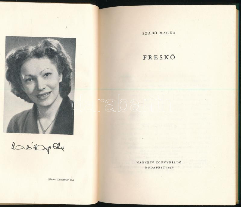Szabó Magda: Freskó. A szerző, Szabó Magda (1917-2007) író, költő által DEDIKÁLT példány. Bp., 1958, Magvető. Első kiadás! Kiadói félvászon kötés, szakadt kiadói papír védőborítóban.