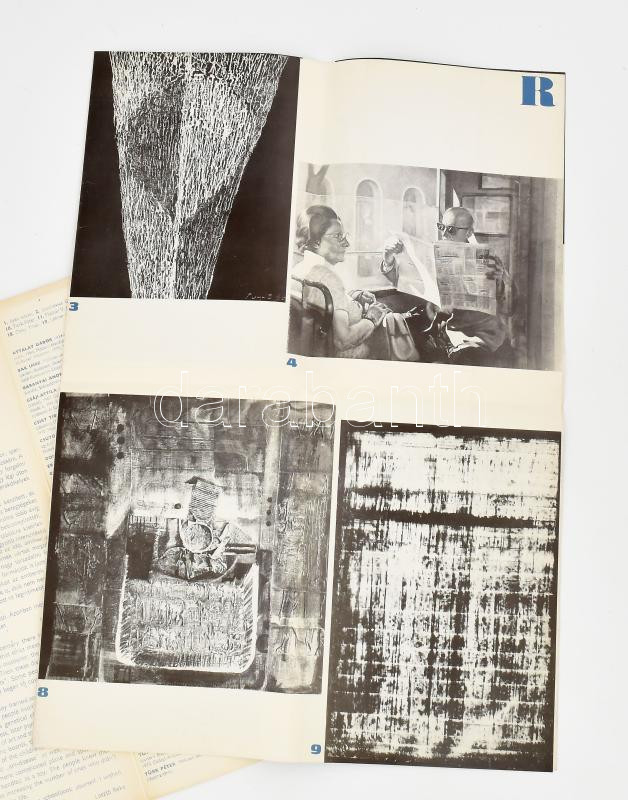 Az "R" kiállítás katalógusa, Műegyetem R épület, 1970 december. H.n, é.n., k.n. Többek közt Csáji Attila, Korniss Dezső, Lakner László, Lantos Ferenc, Jovánovics György, Méhes László, Tót Endre, Haraszty István műveivel illusztrált kihajtható kiállítási katalógus, Beke László magyar és angol nyelvű bevezetőjével. A magyar neoavantgárd művészet egyik legszélesebb körű, legendás tárlata. Borítóján utólagos filctollas "Műegyetem, R épület, 1970" felirattal. Rendkívül ritka kiadvány!